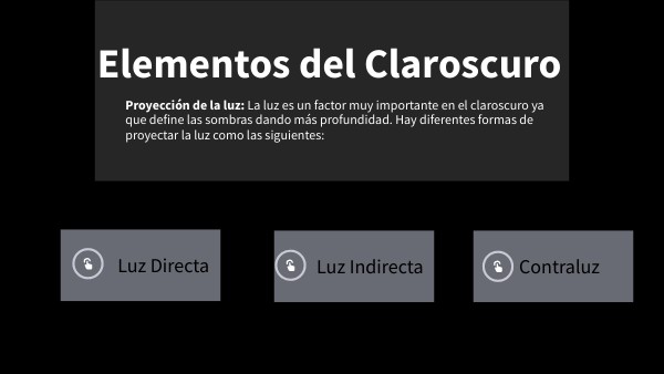 Proyección de la luz: La luz es un factor muy importante en el claroscuro ya que define las sombras dando más profundidad. Hay diferentes formas de proyectar la luz como las siguientes:
