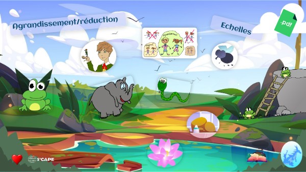 Ramène sur le fond rose l'agrandissement à l'échelle 2. Laisse les autres figures sur les feuilles de nénuphar.