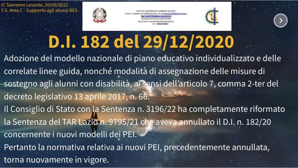 IC Sanremo Levante, 20/09/2022F.S. Area C - Supporto agli alunni BES