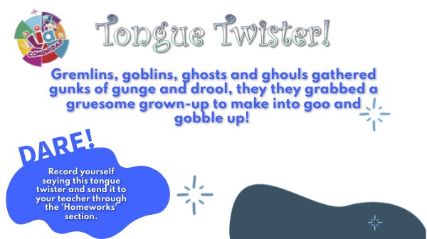 Record yourself saying this tongue twister and send it to your teacher through the 'Homeworks' section.