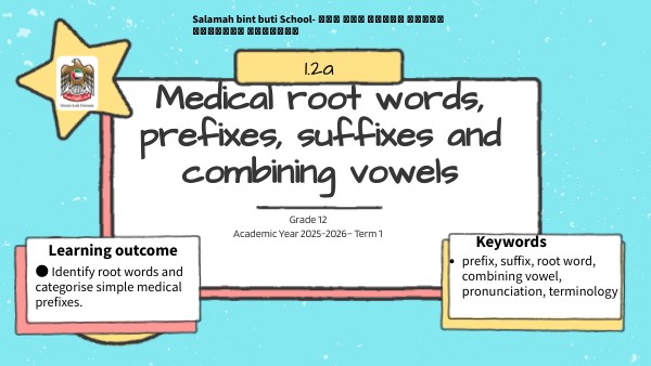 ● categorise simple medical suffixes and combining vowels.