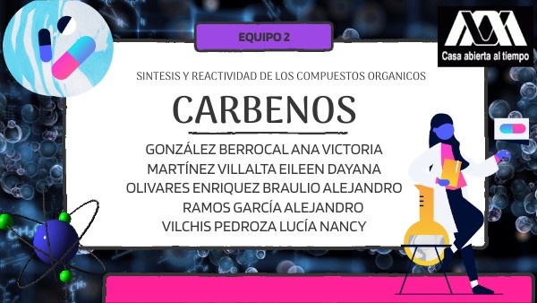 Los carbenos son intermedios reactivos sin carga que contienen un atomo de carbono divalente.