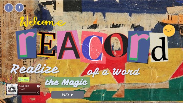 Kami membuat suatu proyek bernama REACORD alias Realize The Magic of A Word. Melalui proyek ini, kami akan memperlihatkan suatu sihir yang begitu besar dari sepatah hingga beberapa patah kata.