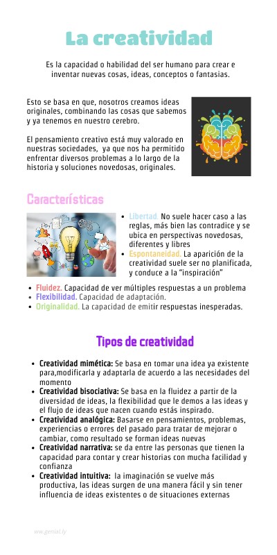Es la capacidad o habilidad del ser humano para crear e inventar nuevas cosas, ideas, conceptos o fantasias.
