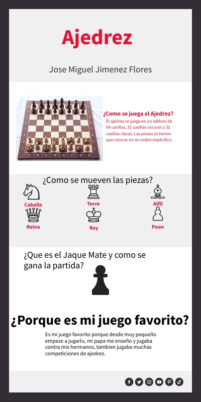 Es mi juego favorito porque desde muy pequeño empeze a jugarlo, mi papa me enseño y jugaba contra mis hermanos, tambien jugaba muchas competiciones de ajedrez.