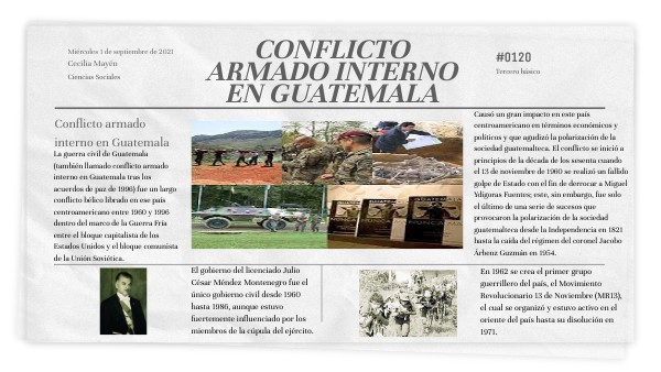 Causó un gran impacto en este país centroamericano en términos económicos y políticos y que agudizó la polarización de la sociedad guatemalteca. El conflicto se inició a principios de la década de los sesenta cuando el 13 de noviembre de 1960 se realizó un fallido golpe de Estado con el fin de derrocar a Miguel Ydígoras Fuentes; este, sin embargo, fue solo el último de una serie de sucesos que provocaron la polarización de la sociedad guatemalteca desde la Independencia en 1821 hasta la caída del régimen del coronel Jacobo Árbenz Guzmán en 1954.