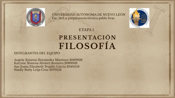 Angela Ximena Hernández Martínez Realmente casi siempre no le tomo importancia al tema de la filosofía, ya que es la primera vez que tengo esta materia y entendí muchas cosas, repasé conceptos que no recordaba como los mitos, religión, leyendas y como se relacionan con el tema de la filosofía. Algo que me llamo la atención fue la filosofía en la ciencia. Además de “amor a la sabiduría”, la filosofía también se define como la ciencia del ser (de todo ser) que, a la luz de la razón natural, busca las causas últimas de todas las cosas, partiendo de la experiencia”. Como hemos dicho anteriormente, esta ciencia estudia ciertos problemas fundamentales como la existencia, el conocimiento, la verdad, la belleza, la mente y el lenguaje. La filosofía se distingue de otras maneras de abordar estos problemas (como el misticismo y la mitología) por su método critico y generalmente sistemático, así como por su énfasis en los argumentos racionales. Espero que hallan aprendido muchas cosas que no sabían o les llamó la atención como redactamos lo más importante del tema. La definición de la filosofía, lo esencial que es al momento de hacer tareas sobre este tema como esta para el trabajo. Nos dejo muchos aprendizajes esta etapa memorizamos su significado, sus métodos entre otras cosas, con el desarrollo de la ciencia moderna y el aumento del numero de disciplinas, las ramas de la filosofía hoy en día son tantas como diversas ciencias existen; por ejemplo: filosofía del cine, filosofía del diseño, filosofía de la música, de los negocios, de la salud, de la historia, del arte, lenguaje, política y ciencia. Nos gustaría que cuando terminaran de ver nuestro trabajo se motiven e intenten explorar más sobre los filósofos porque han hecho muchas obras y aportaciones importantes que han repercutido en lo que vemos, igual dejaremos referencias bibliográficas para que explores