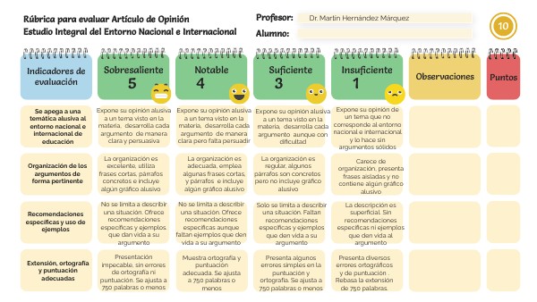 Rúbrica para evaluar Artículo de OpiniónEstudio Integral del Entorno Nacional e Internacional