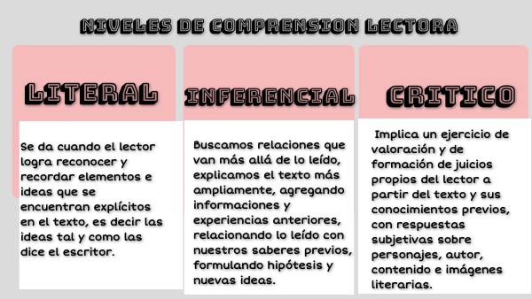 cuadro comparativo sobre los niveles de comprensión lectora.