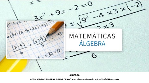 ÁLGEBRA NOTA: VIDEO “ÁLGEBRA DESDE CERO” youtube.com/watch?v=FboTr4foiJE&t=103s
