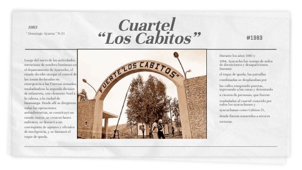 Durante los años 1983 y 1984, Ayacucho fue testigo de miles de detenciones y desapariciones. Durante el toque de queda, las patrullas combinadas se desplazaban por las calles rompiendo puertas, ingresando a las casas y deteniendo a cientos de personas, que fueron trasladadas al cuartel conocido por todos los ayacuchanos y ayacuchanas como Cabitos 51, donde fueron sometidos a atroces torturas.