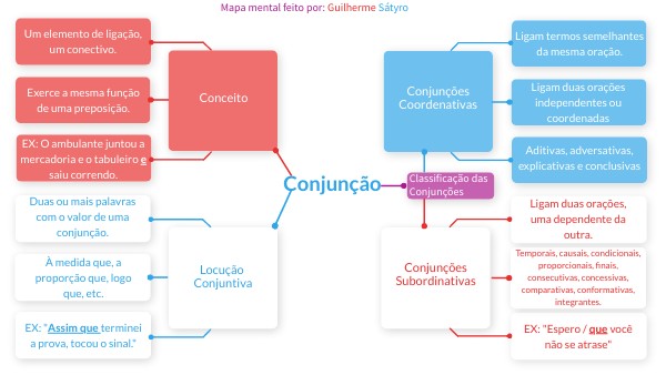 Um mapa mental resumindo sobre as conjunções na língua portuguesa.