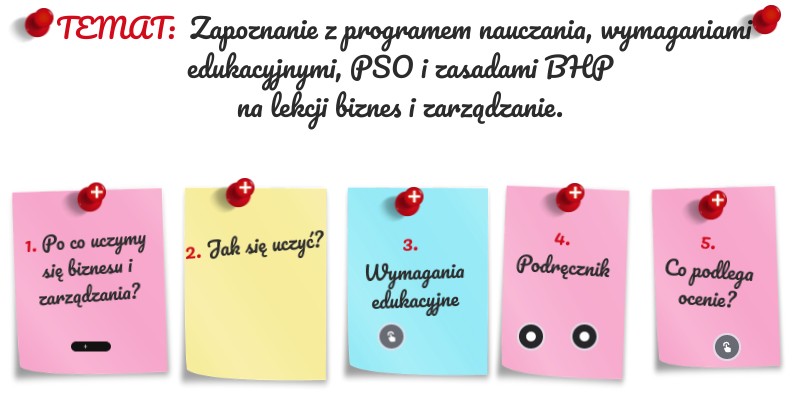 TEMAT: Zapoznanie z programem nauczania, wymaganiami edukacyjnymi, PSO i zasadami BHP na lekcji biznes i zarządzanie.