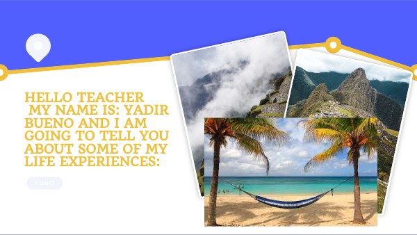 Hello teacher My name is: Yadir Bueno and I am going to tell you about some of my life experiences: