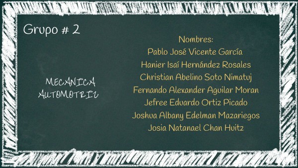 Nombres:Pablo José Vicente García Hanier Isaí Hernández Rosales Christian Abelino Soto Nimatuj Jefree Eduardo Ortiz Picado Joshua Albany Edelman Mazariegos Josia Natanael Chan Huitz