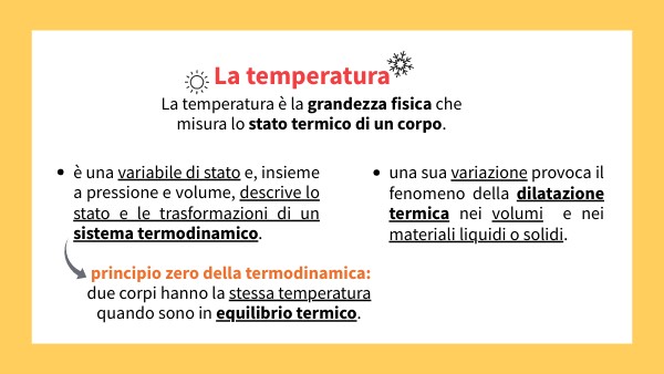 La temperatura è la grandezza fisica che misura lo stato termico di un corpo.