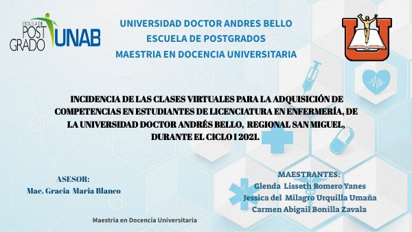 INCIDENCIA DE LAS CLASES VIRTUALES PARA LA ADQUISICIÓN DE COMPETENCIAS EN ESTUDIANTES DE LICENCIATURA EN ENFERMERÍA, DE LA UNIVERSIDAD DOCTOR ANDRÉS BELLO, REGIONAL SAN MIGUEL, DURANTE EL CICLO I 2021.