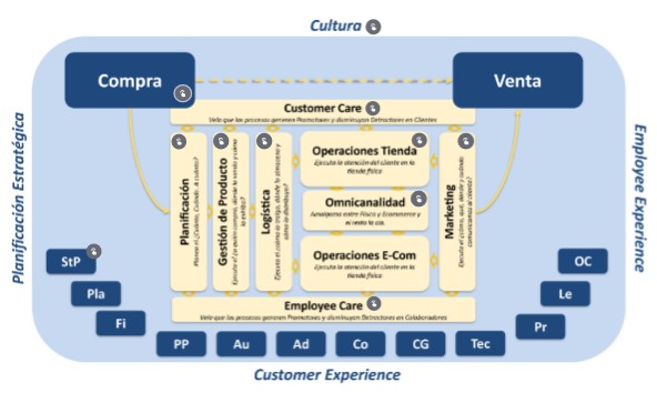 Comparto mi visión conceptual de los procesos en un negocio Retail con canales físicos y virtuales.