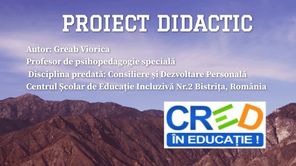 Autor: Greab VioricaProfesor de psihopedagogie specială Disciplina predată: Consiliere și Dezvoltare Personală Centrul Școlar de Educație Incluzivă Nr.2 Bistrița, România