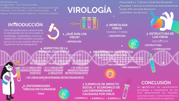Esta inforgrafia busca conocer todo lo relacionado con los virus tanto su morfologia, variabilidad y como se replilan las enfermedades causadas por los virus que puedan afectar el organismo de los trabajadores .