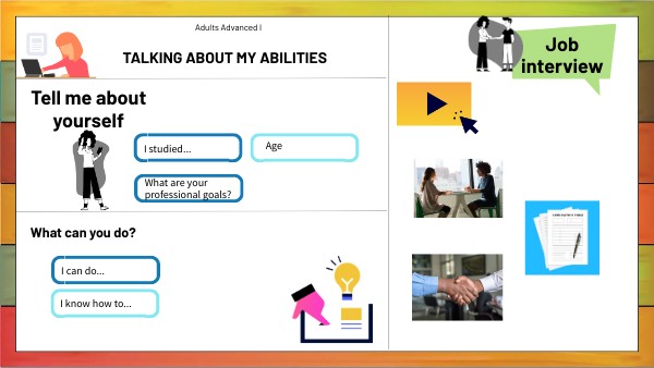 Objective: Discuss how a job interview develops and make a CV for a future job.