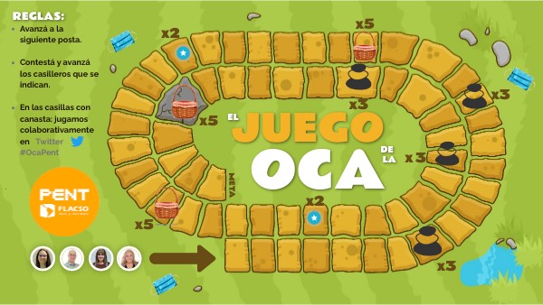 - En las casillas con canasta: jugamos colaborativamente en Twitter #OcaPent