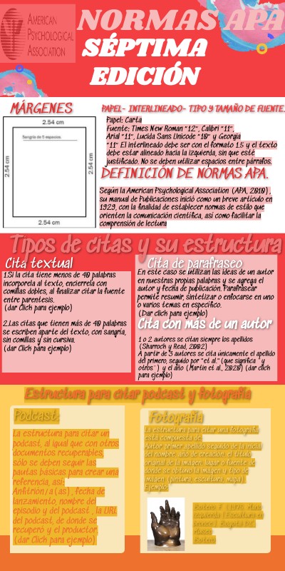 En este caso se utilizan las ideas de un autor en nuestras propias palabras y se agrega el autor y fecha de publicación. Parafrasear permite resumir, sintetizar o enfocarse en uno o varios temas en específico. (Dar click para ejemplo)