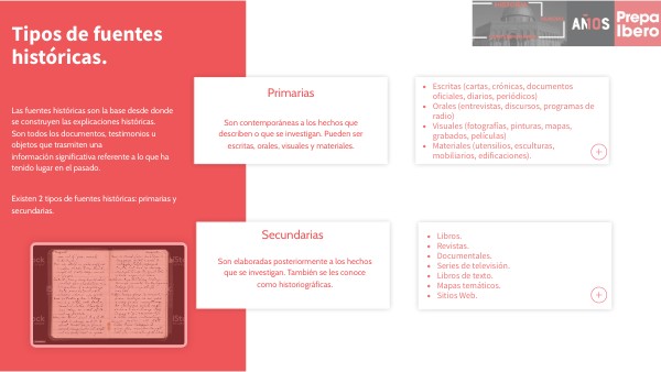 Existen 2 tipos de fuentes históricas: primarias y secundarias.