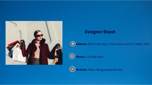 Address: 8013 S US Hwy 1, Port Saint Lucie, FL 34952, USA Phone: 772-249-5350 Website: http://designerdepotfl.com