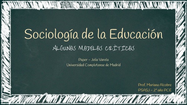 Sociología Educacional - Algunos modelos críticos por Julia Varela
