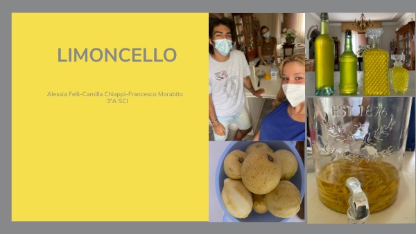 - Francesco ha colto i limoni dal suo albero - Abbiamo tagliato a listarelle le bucce con un pelapatate - Le abbiamo messe in un contenitore ermetico insieme all'alccol - Lo abbiamo lasciato riposare in cantina per otto giorni