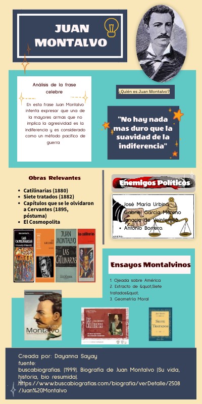 Creada por: Dayanna Sayay fuente: buscabiografias. (1999). Biografía de Juan Montalvo (Su vida, historia, bio resumida). https://www.buscabiografias.com/biografia/verDetalle/2508/Juan%20Montalvo