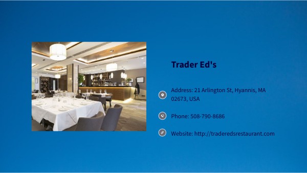 Address: 21 Arlington St, Hyannis, MA 02673, USA Phone: 508-790-8686 Website: http://traderedsrestaurant.com