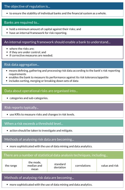 - means defining, gathering and processing risk data according to the bank's risk reporting requirements
