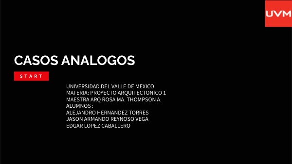 UNIVERSIDAD DEL VALLE DE MEXICO MATERIA: PROYECTO ARQUITECTONICO 1 MAESTRA ARQ ROSA MA. THOMPSON A. ALUMNOS : ALEJANDRO HERNANDEZ TORRES JASON ARMANDO REYNOSO VEGA EDGAR LOPEZ CABALLERO