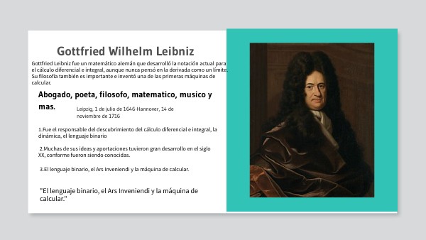 1.Fue el responsable del descubrimiento del cálculo diferencial e integral, la dinámica, el lenguaje binario