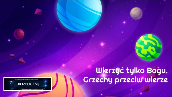 Za drzwiami, które są przed Tobą znajduje się pomieszczenie, gdzie dokonamy pewnego podsumowania poznanych treści katechizmowych. To jednka jeszcze nie powrót na Ziemię. Drzwi otowrzysz klikając w panel pośrdoku.