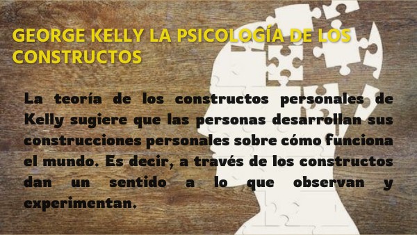 La teoría de los constructos personales de Kelly sugiere que las personas desarrollan sus construcciones personales sobre cómo funciona el mundo. Es decir, a través de los constructos dan un sentido a lo que observan y experimentan.