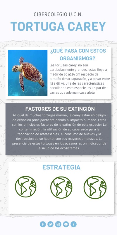 Al igual de muchas tortugas marina, la carey están en peligro de extincion principalmente debido al impacto humano. Estos son los principales factores de la extinción de esta especie: La contaminación, la utilización de su caparazón para la fabricacion de artetesanías, el consumo de huevos y la destruccion de su habitat son sus mayores amenazas. La presencia de estas tortugas en los oceanos es un indicador de la salud de los ecosistemas.