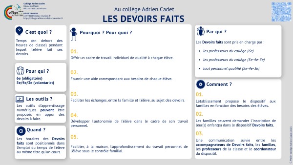 Informer les familles de ce qui a été réalisé lors des séances de Devoirs faits.