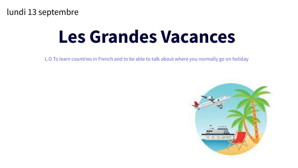 L.O To learn countries in French and to be able to talk about where you normally go on holiday