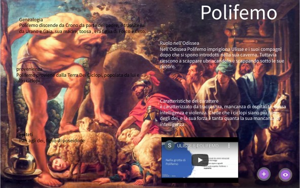 Ruolo nell'Odissea Nell'Odissea Polifemo imprigiona Ulisse e i suoi compagni dopo che si spono introdotti nella sua caverna. Tuttavia riescono a scappare ubriacandolo e scappando sotto le sue pecore.
