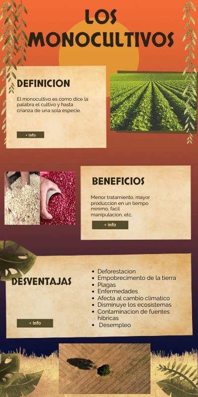 El monocultivo es como dice la palabra el cultivo y hasta crianza de una sola especie.