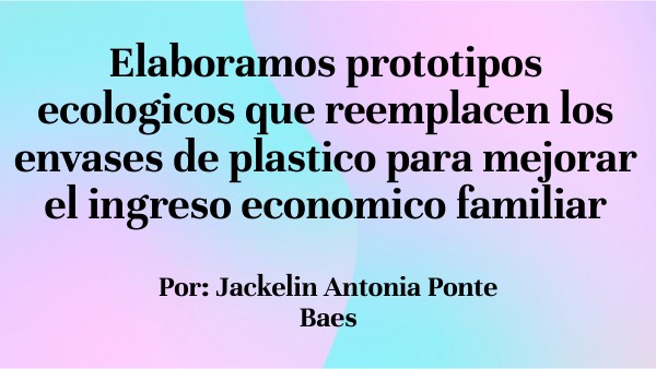 Elaboramos prototipos ecologicos que reemplacen los envases de plastico para mejorar el ingreso economico familiar