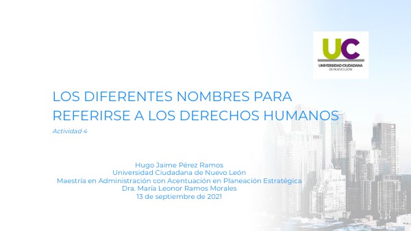 Hugo Jaime Pérez Ramos Universidad Ciudadana de Nuevo León Maestría en Administración con Acentuación en Planeación Estratégica Dra. María Leonor Ramos Morales 13 de septiembre de 2021