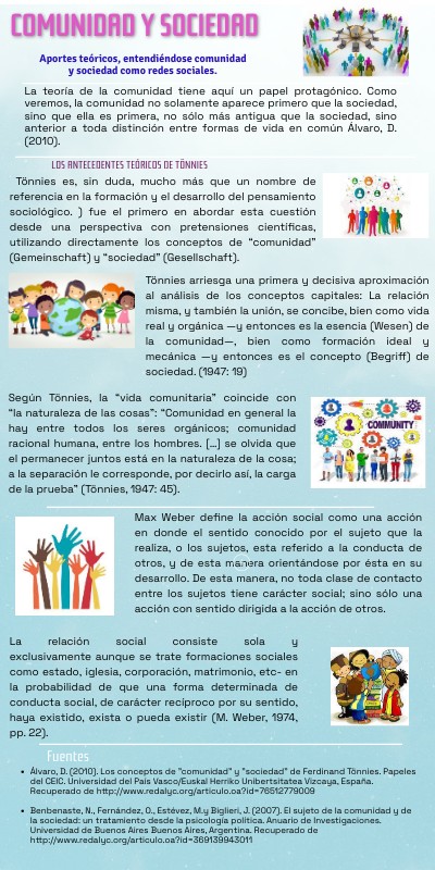 Aportes teóricos, entendiéndose comunidad y sociedad como redes sociales.