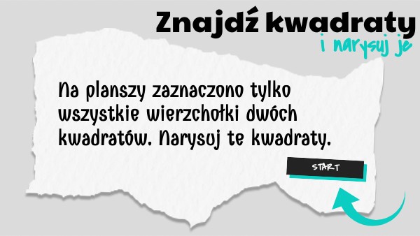 Na planszy zaznaczono tylko wszystkie wierzchołki dwóch kwadratów. Narysuj te kwadraty.