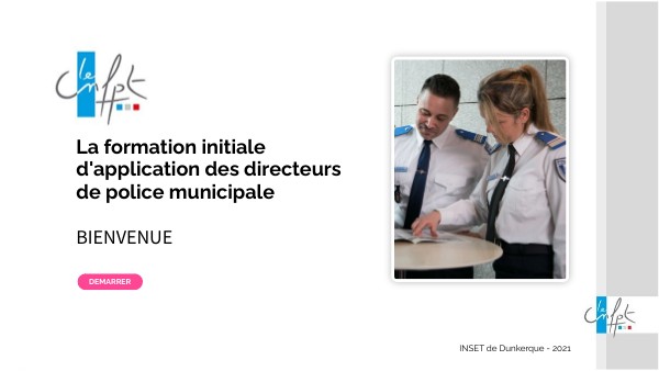La formation initiale de directrice/directeur de police municipale est une formation spécifique comme toutes celles relatives aux agents des cadres d’emplois de la police municipale dans la mesure où elle ne revêt pas les mêmes obligations statutaires que les autres formations initiales organisées par le Centre National de la Fonction Publique Territoriale. Organisée par l’Institut National spécialisé d’Etudes Territoriales (INSET) de Dunkerque, elle se caractérise par une période de formation initiale longue avant titularisation.