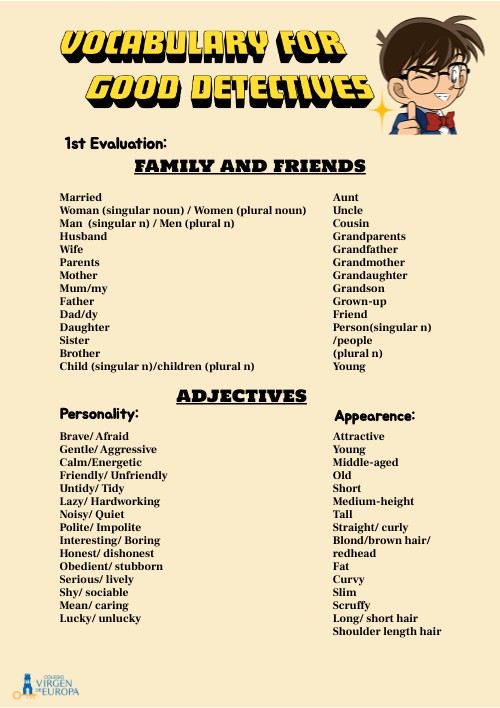 Aunt Uncle Cousin Grandparents Grandfather Grandmother Grandaughter Grandson Grown-up Friend Person(singular n) /people (plural n) Young