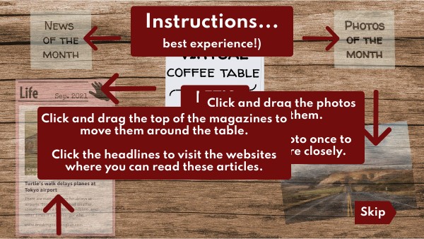 Click and drag the top of the magazines to move them around the table. Click the headlines to visit the websites where you can read these articles.
